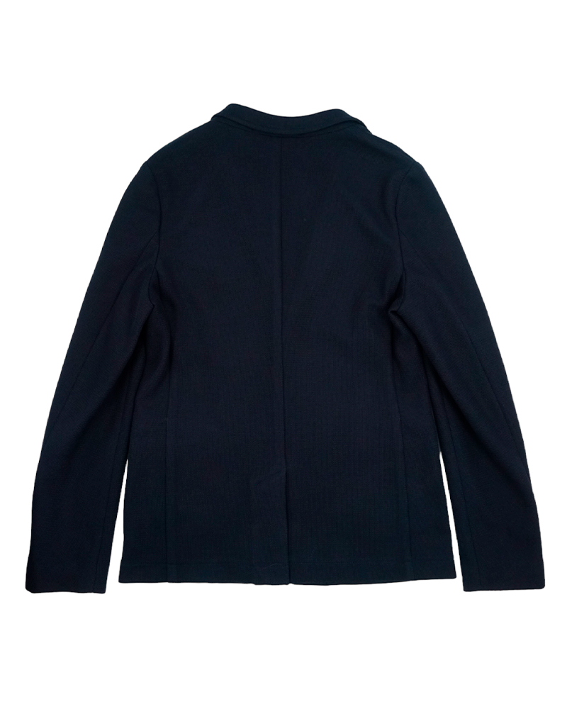 Пиджак однобортный, с двумя пуговицами на передней полочке, с прямоугольным лацканом, с двумя врезными карманами с клапанами.