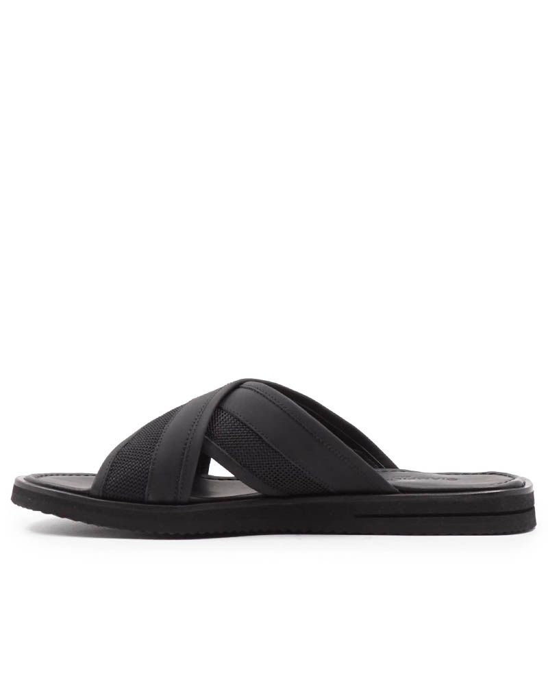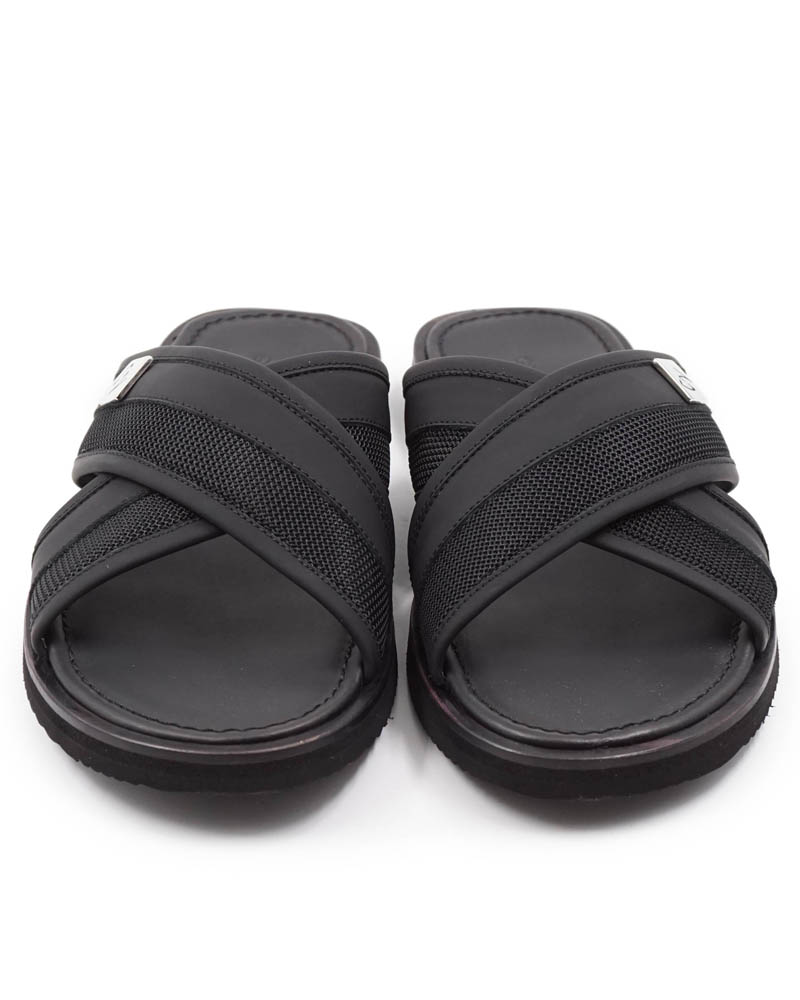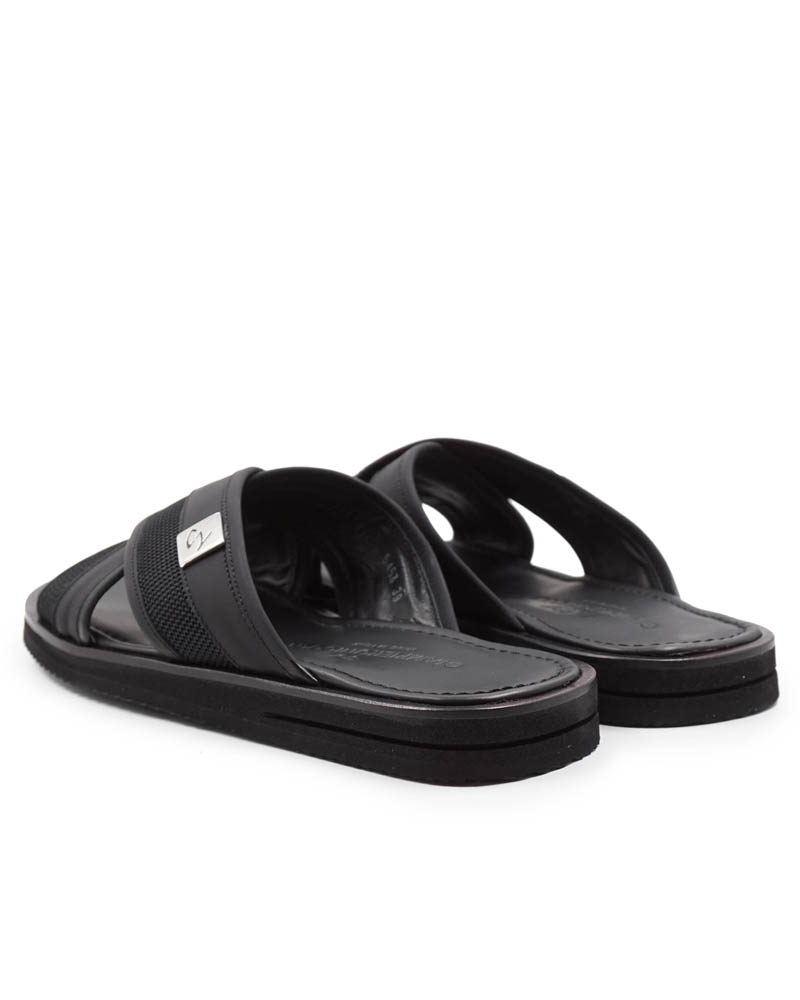 Специалисты бренда Giampieronicola изготовили черные тапочки из комбинированных материалов.